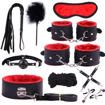 十件 BDSM 束縛套裝|皮革+毛絨捆綁情趣工具組